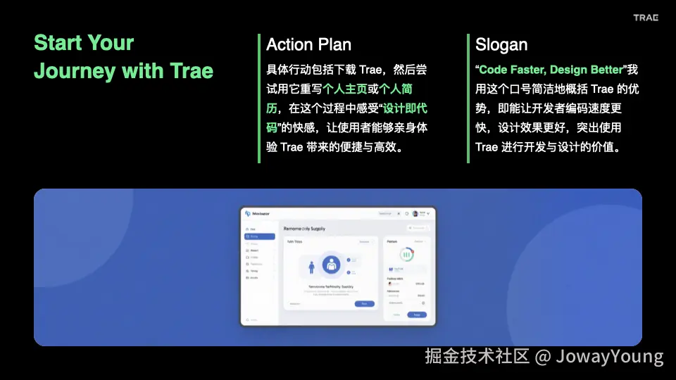 回顾整场分享,我们清晰地看到了 AI 技术如何重塑产品设计的全链路。Trae 不仅仅是一个工具,它是更是我们的合伙人。