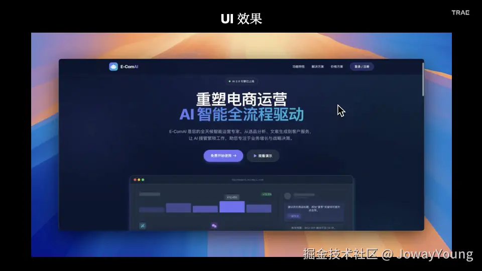 - Action:尝试在没有 Figma 设计稿的情况下,仅通过自然语言描述和参考图,使用 Trae 独立完成一个 Landing Page 的开发