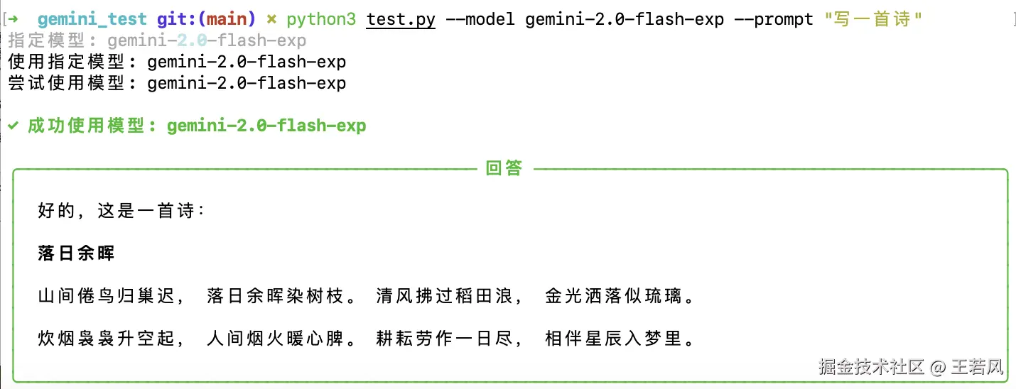 ./gemini.sh -m gemini-2.5-pro -p "写一首诗"