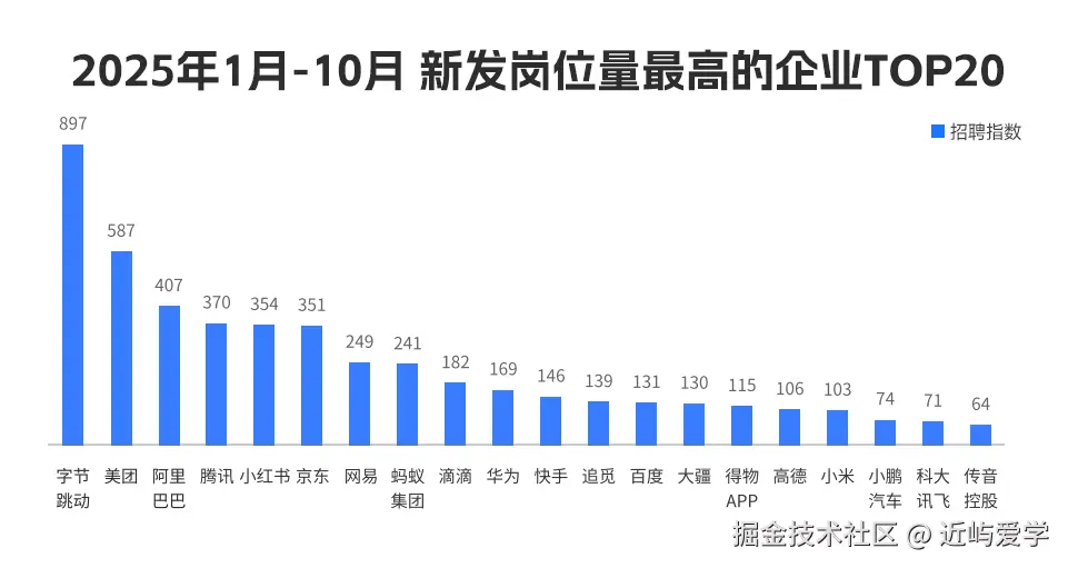 字节跳动在新发岗位总量和AI岗位量上“断层式”领先,小红书异军突起跻身热招企业前列。不仅是大厂,近八成企业已布局AI,超一成已规模化实践。一场以AI为核心的人才争夺战,已无旁观席。