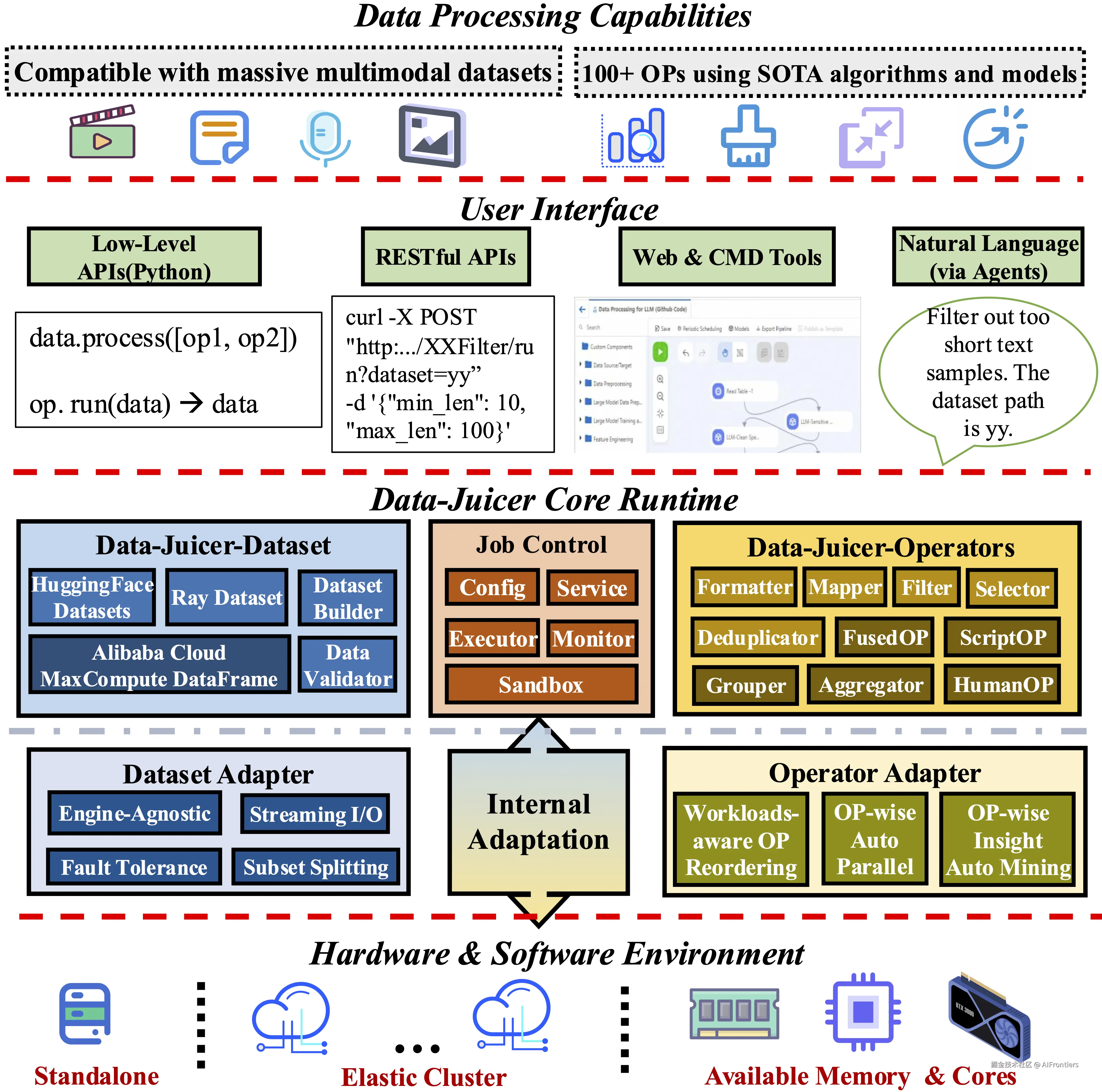 一站式与系统化:涵盖了数据分析、清洗、过滤、转换、去重及合成的完整链路。它不仅是一个工具包,更是一个完整的系统,提供了100多个核心算子。