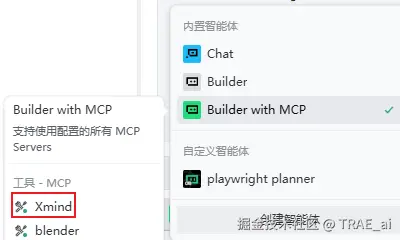 第三步:选择智能体并开始使用安装成功后,选择你刚刚配置了 XMind-MCP 的那个智能体,然后就可以直接向 AI 下达指令了。