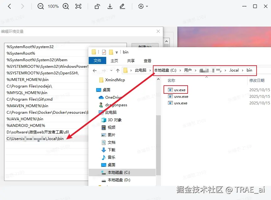 第二步:安装环境依赖如果你的电脑没有安装过 Python 或 uv,TRAE 会引导你进行安装。对于 Windows 用户,安装 uv 后,请确保将 uv 的安装路径 (通常是 C:\Users\YourUsername.uv\bin )手动添加到系统环境变量的 Path 中。