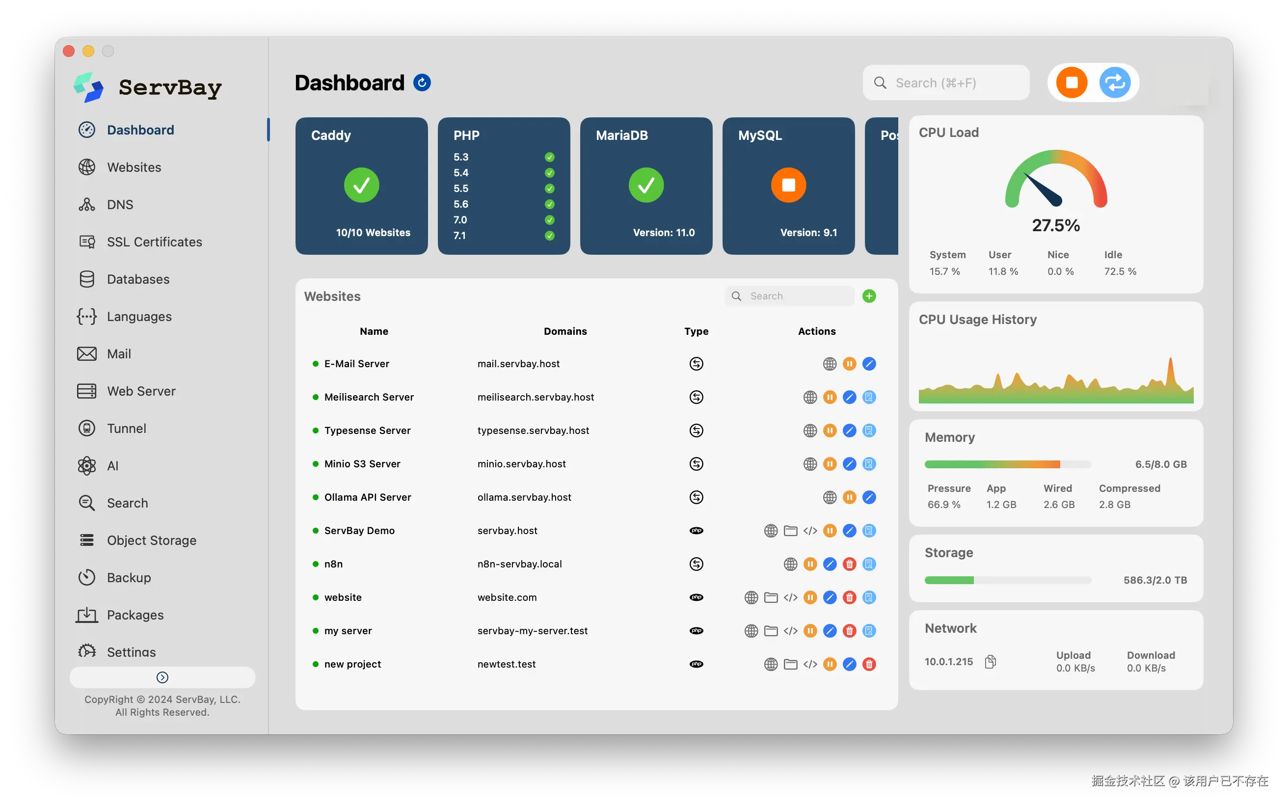 ServBay 就是一个开箱即用的工具箱,具备一套完整的 GUI 本地开发环境,最佳的 Docker 替代品。它内置了 PHP、Node.js、Python、Go、Rust 等主流编程语言,并且做好了版本隔离。开发者可以在不同项目间通过图形界面一键切换语言版本,无需手动修改环境变量。