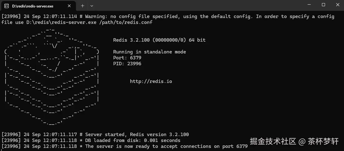 C:\Program Files\Redis),运行redis-server.exe redis.windows.conf。