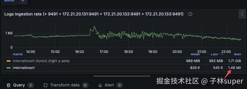victorialogs最大的insert速率149w/s,但写入性能不稳定,原因在磁盘IO到瓶颈。