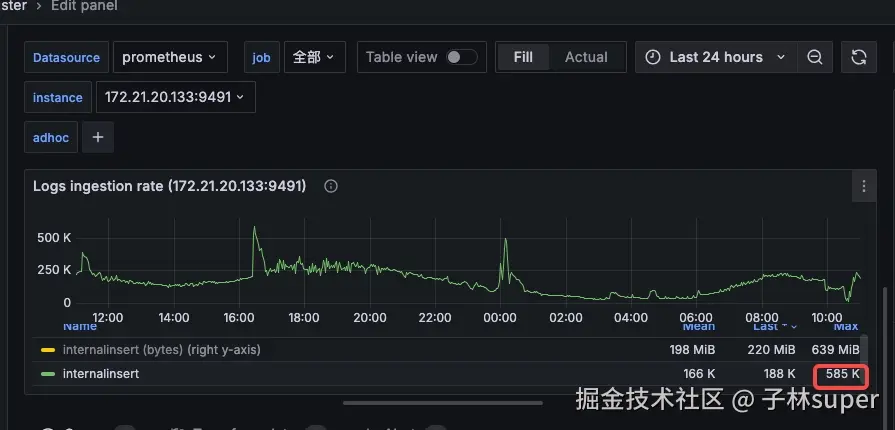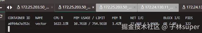 说明:logstash 每秒写入3w,vector每秒写入7w+