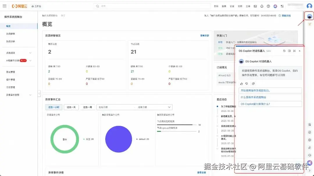阿里云操作系统控制台(以下简称操作系统控制台)是一站式操作系统运维管理平台,提供了内存、I/O、网络、内核崩溃等强大的系统诊断能力,SysOM是操作系统控制台的运维组件。但这些功能通常需要用户登录控制台,并具备一定的运维经验才能有效使用。
