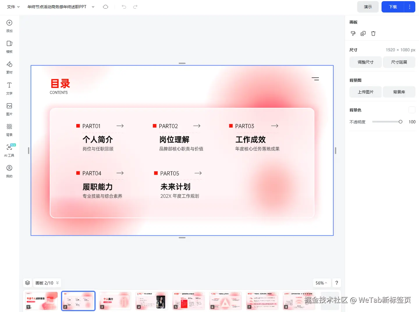 最近,我的“神仙浏览器插件”——WeTab新标签页【PPT模板】组件。