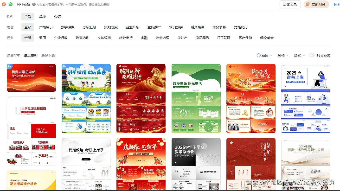 市面上的 PPT 网站很多,但 WeTab 这个组件最大的优势在于:极度便捷且资源巨多。
