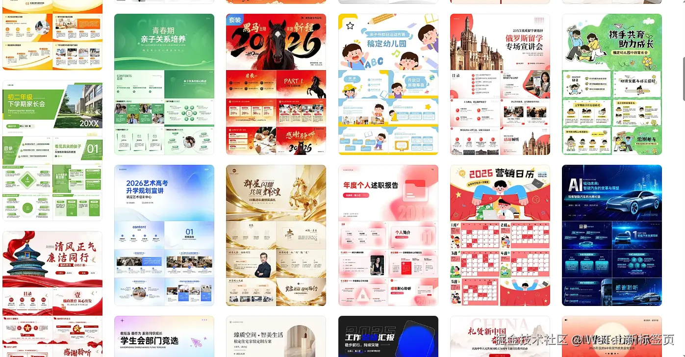 它直接集成在你的浏览器新标签页里。不需要打开专门的网站,不需要登录乱七八糟的账号,点击PPT模板组件 -> 挑选模板 -> 在线编辑,三步搞定。