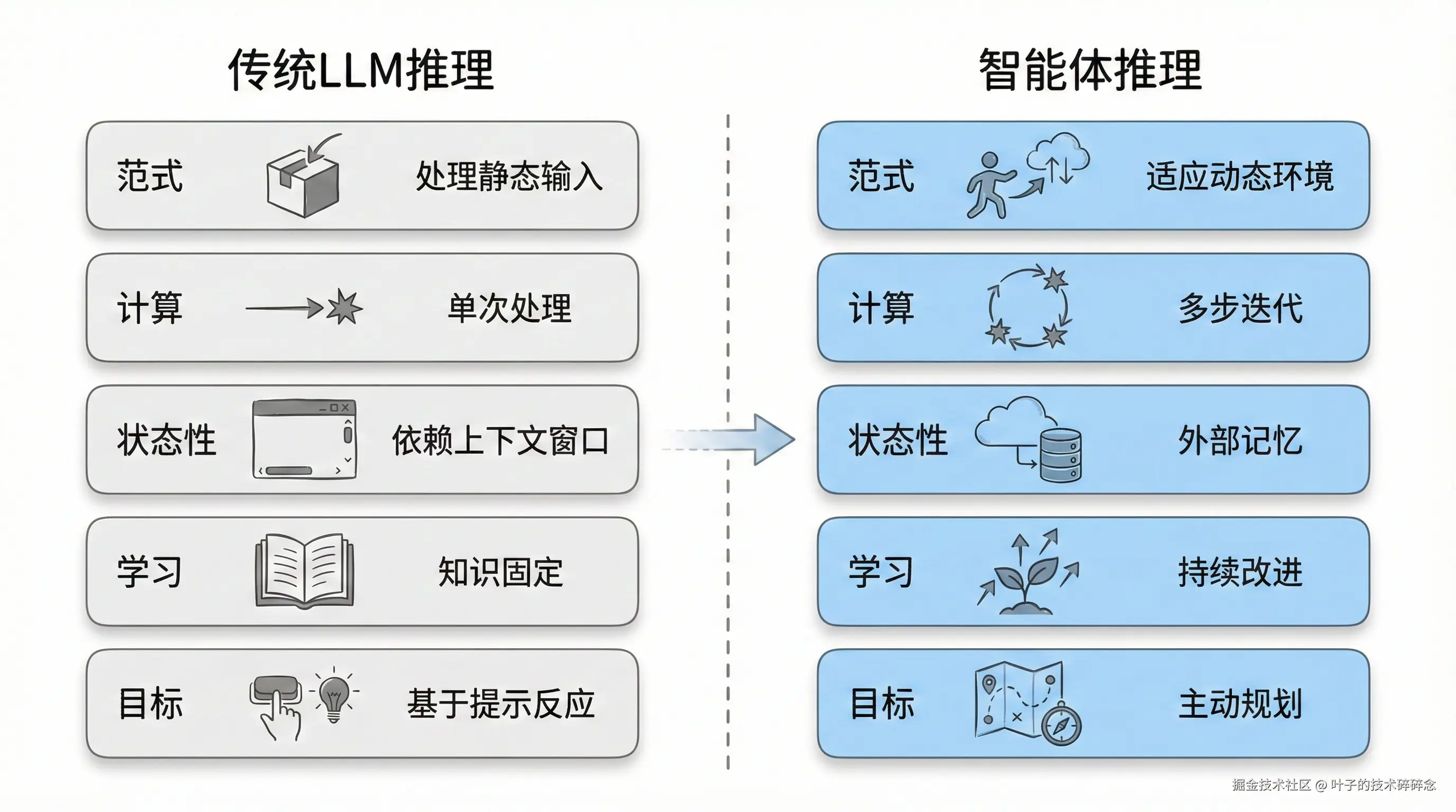 智能体推理代表了AI发展的一个新方向。AI从被动响应转向主动解决问题,从静态知识库转向动态学习系统。