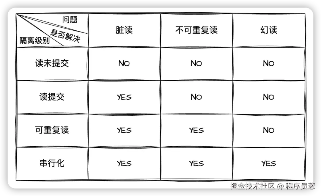串行化(SERIALIZABLE) :最高级别,完全避免所有并发问题,但性能极低(串行执行事务)。