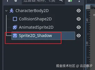 - 然后我们还需要重命名一下,命名那个2d精灵节点为Sprite2D_Shadow