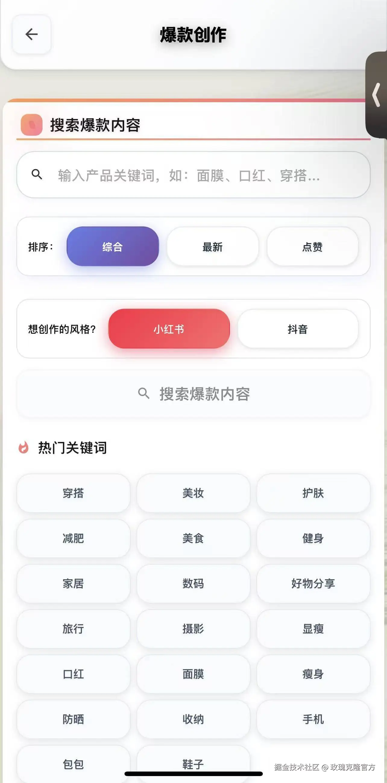 玫瑰克隆的出现,恰好帮大家跨过了这道最难的门槛——它不是一款普通的AI文案工具,而是一套“全流程小红书创作解决方案”,从灵感获取、内容生成,到优化发布、提升流量,一站式搞定,彻底降低了副业创作的门槛。