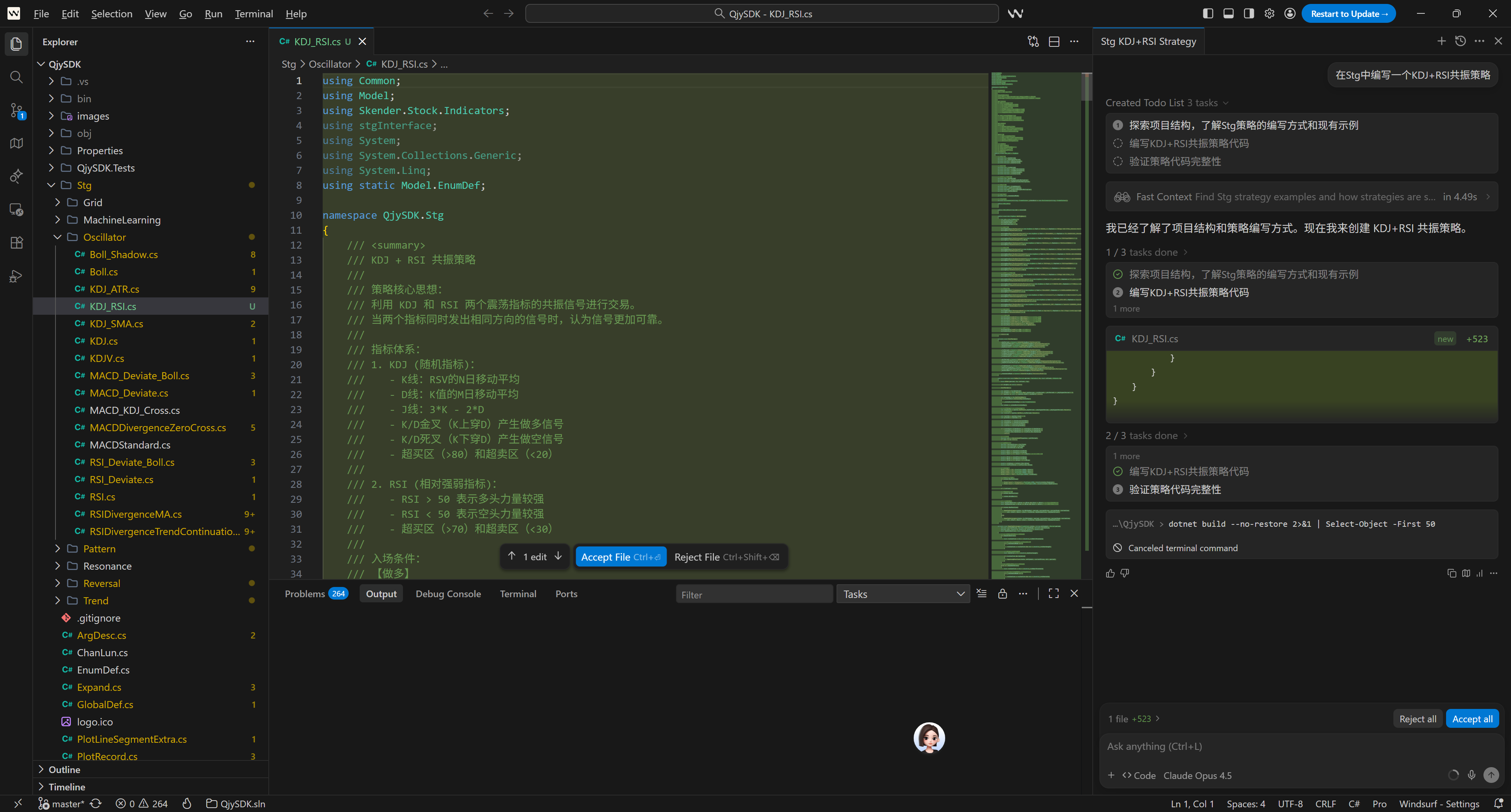 几秒钟后,你会发现 AI 已经在 Stg/Oscillator/ 目录下创建了策略文件,包含: