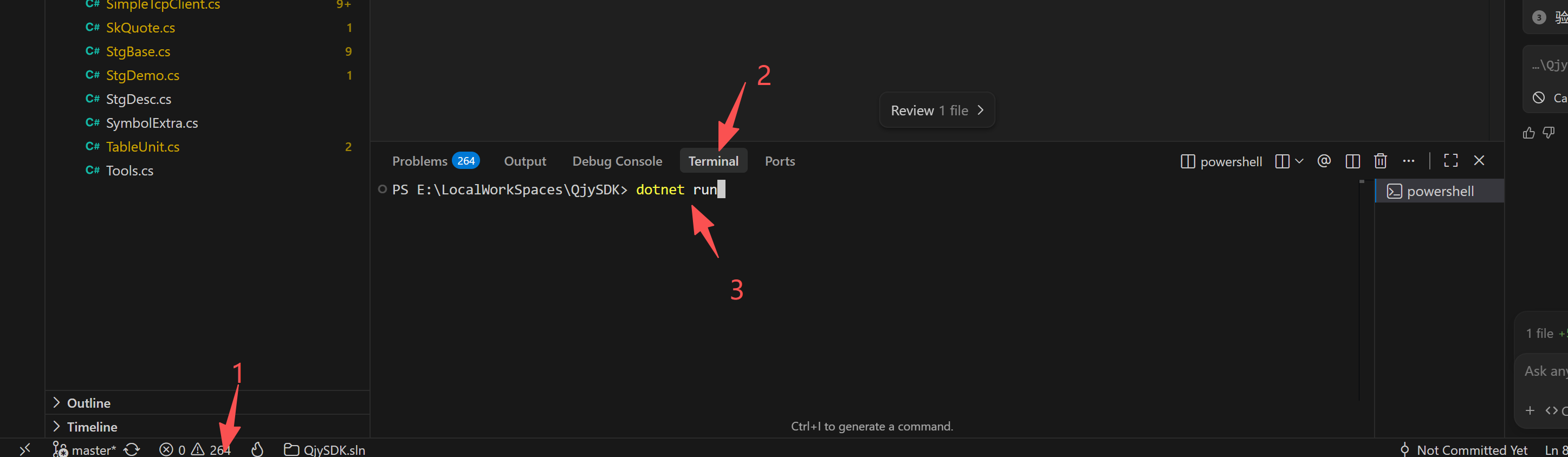 Program.cs中 - 打开终端,执行: