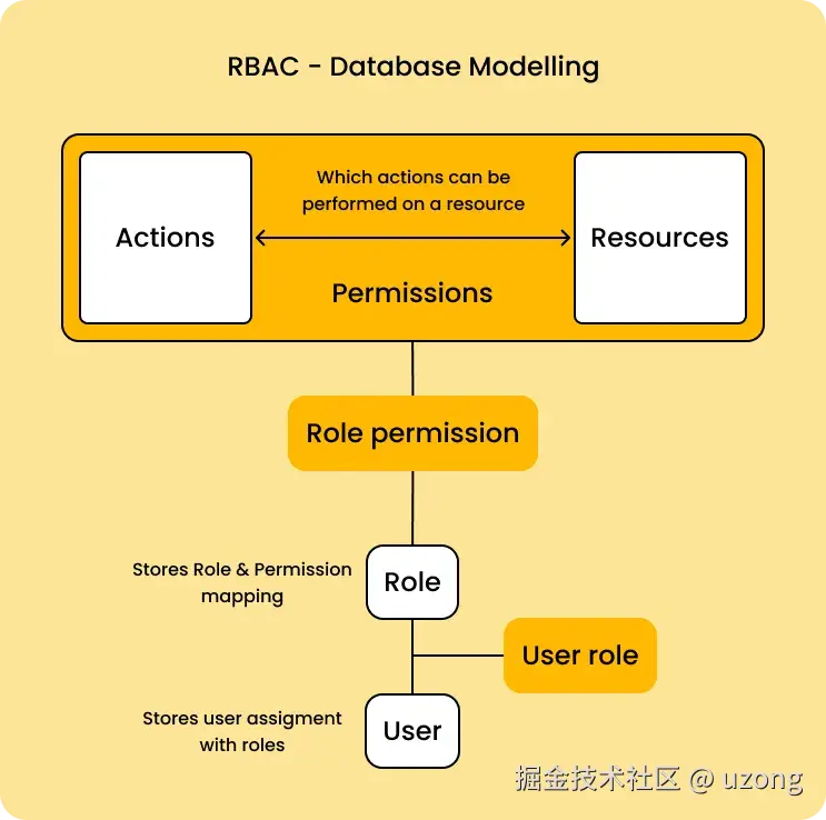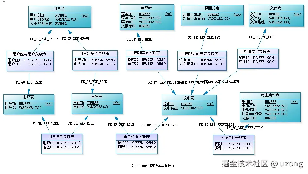在应用系统中,权限表现成什么?对功能模块的操作,对上传文件的删改,菜单的访问,甚至页面上某个按钮、某个图片的可见性控制,都可属于权限的范畴。有些权限设计,会把功能操作作为一类,而把文件、菜单、页面元素等作为另一类,这样构成用户-角色-权限-资源的授权模型。而在做数据表建模时,可把功能操作和资源统一管理,也就是都直接与权限表进行关联,这样可能更具便捷性和易扩展性