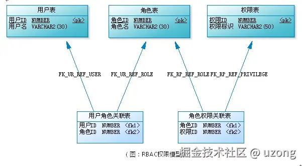 RBAC(Role-Based Access Control)基于角色的权限控制。通过角色来管理用户的权限。即用户拥有角色,角色管理权限。构成 用户–角色–权限 的授权模型。在这种模型中通常设计为一对多