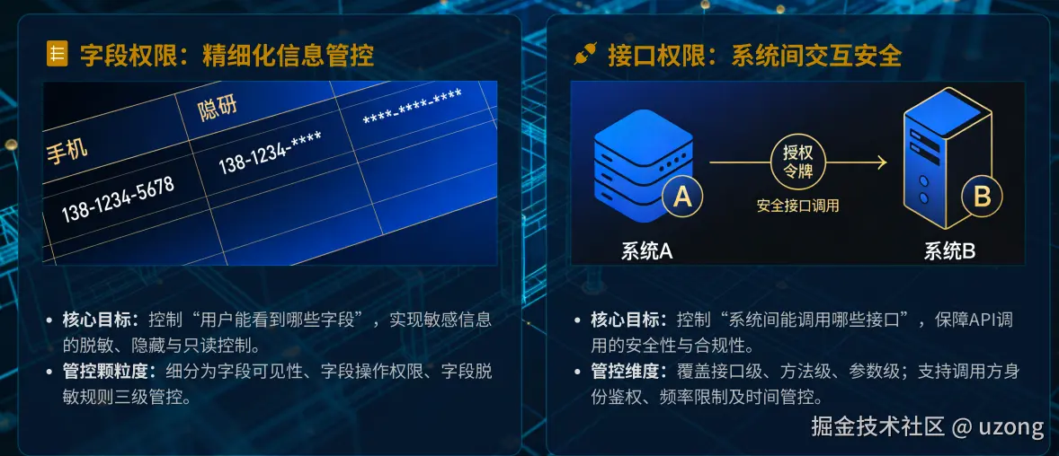 接口权限是权限体系的边界层,用于控制“谁可以调用哪些接口”,防范非法访问与攻击,保障系统间及第三方集成的安全、合规与可控