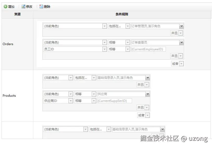 资源:数据权限的控制对象,业务系统中的各种资源。比方订单单据、销售单等主体:用户、部门、角色等条件规则:用于检索数据的条件定义数据规则:用于【数据权限】的条件规则