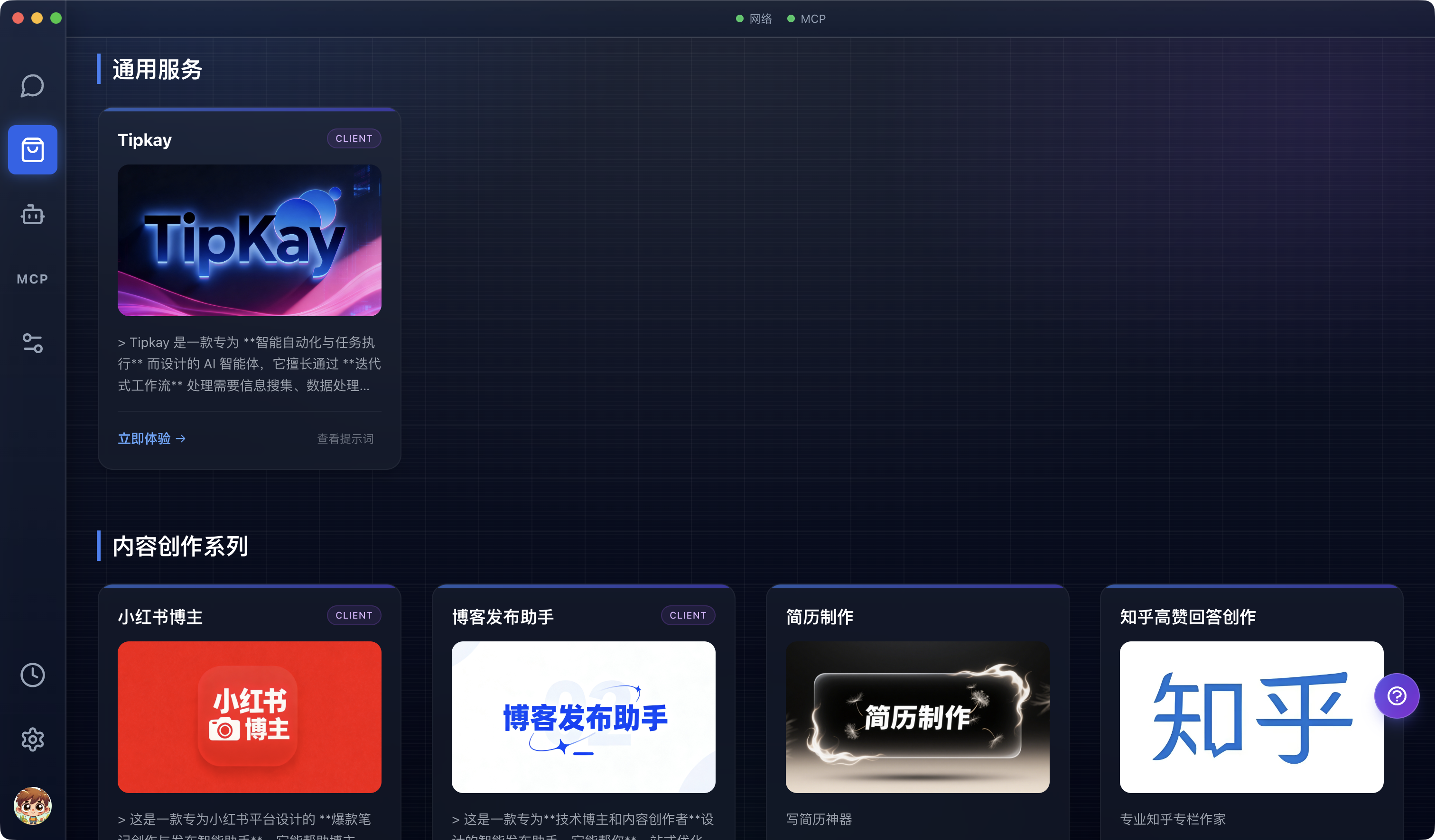 - 通用智能体 Tipkay:像项目管家一样,负责理解目标、拆解任务、统筹推进