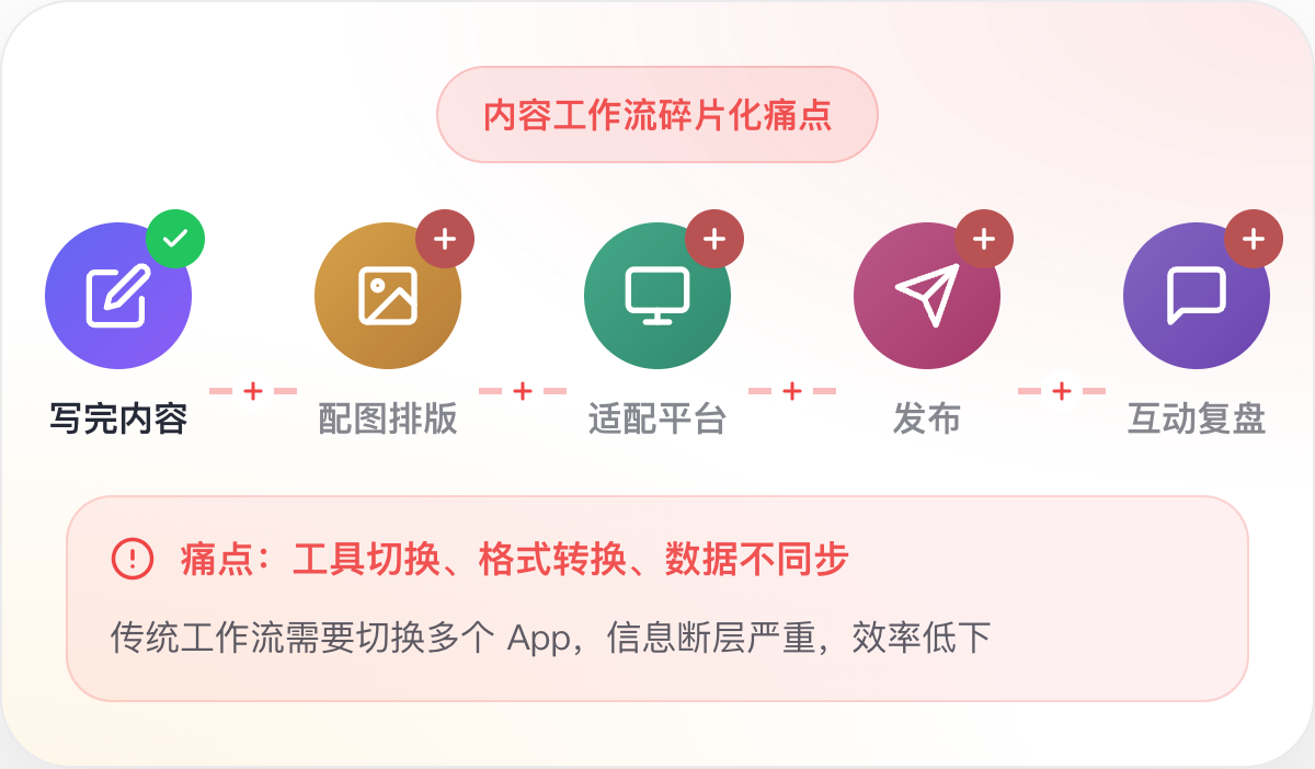 - 越接近业务,越需要工具与系统的拼装:内容、排版、发布、互动、复盘,每一步都可能要接不同能力