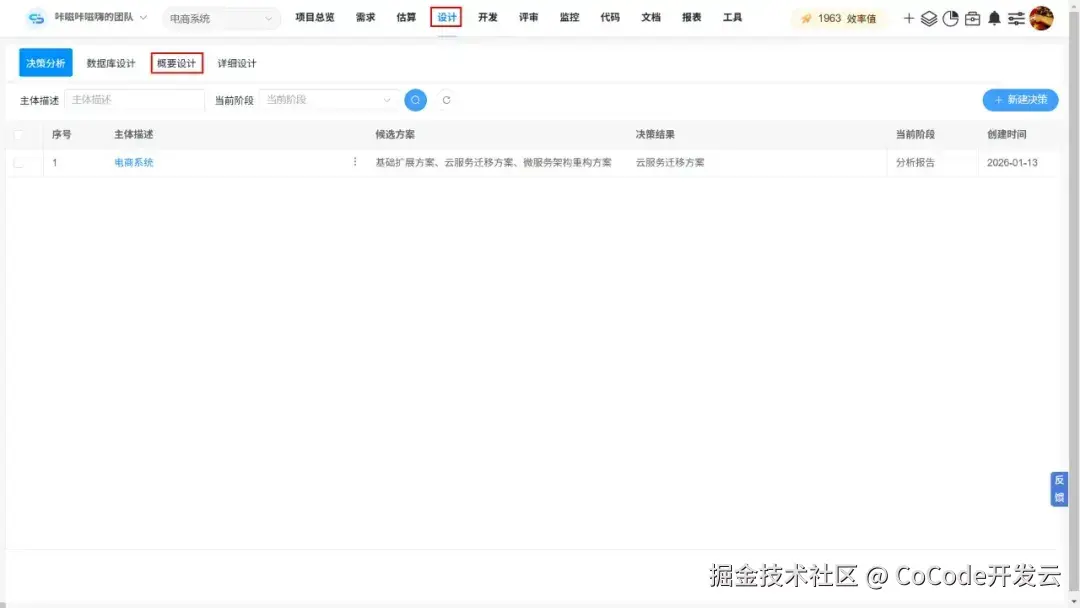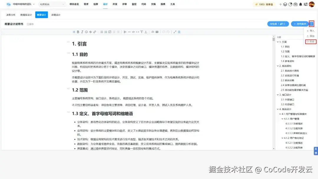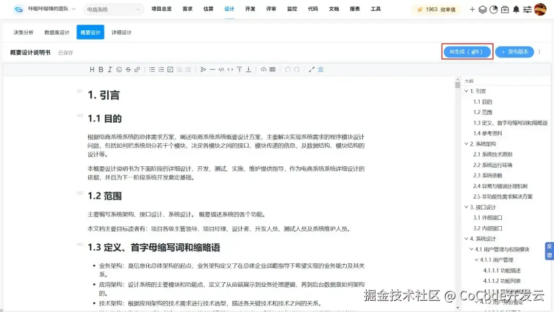 无论是初创团队还是大型企业,均可通过 CoCode 的智能化设计工具,快速完成高质量的概设详设编写,为产品开发提供清晰、可靠的技术蓝图。