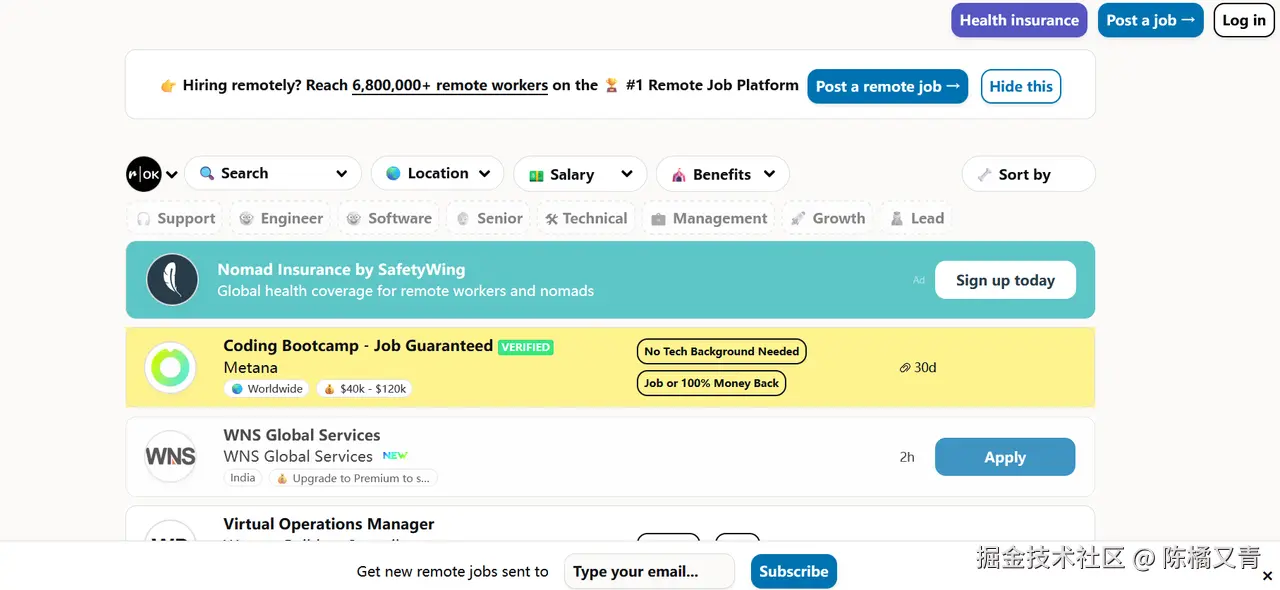 RemoteOK 更像是远程岗位和接单需求的集合入口,平台本身主要承担信息展示的角色,并不深度介入交易流程。