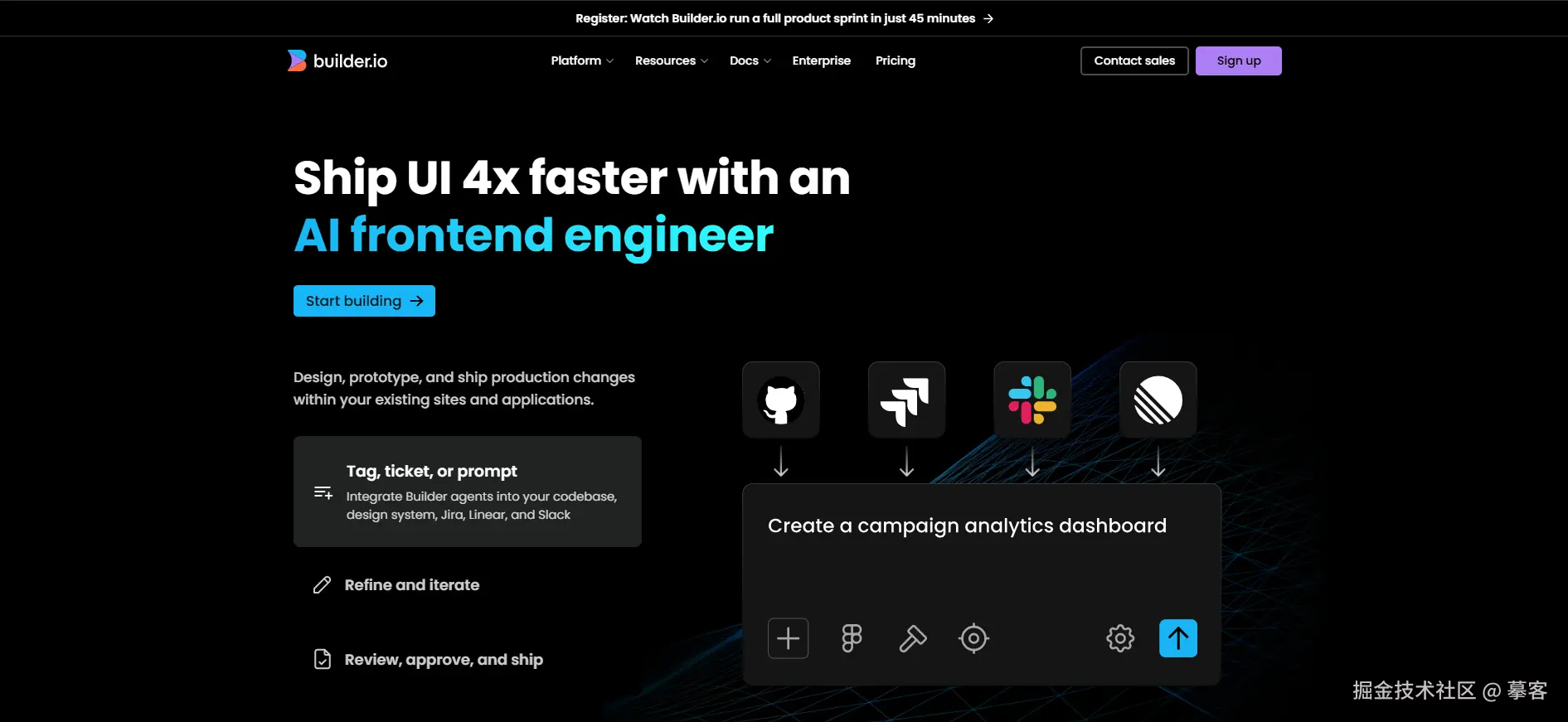 **推荐理由:**通过 Builder.io,你的设计稿变成了一个可以长期运营、非技术人员也能修改内容的“活网站”,极大地释放了开发团队的维护压力。