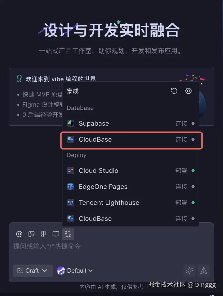localhost”的幻觉。 - CloudBase 承载逻辑上限:作为全栈底座,它让 AI 的逻辑输出不再是网页里的文本,而是能直接部署、调通、并产生真实业务价值的生产级资源。