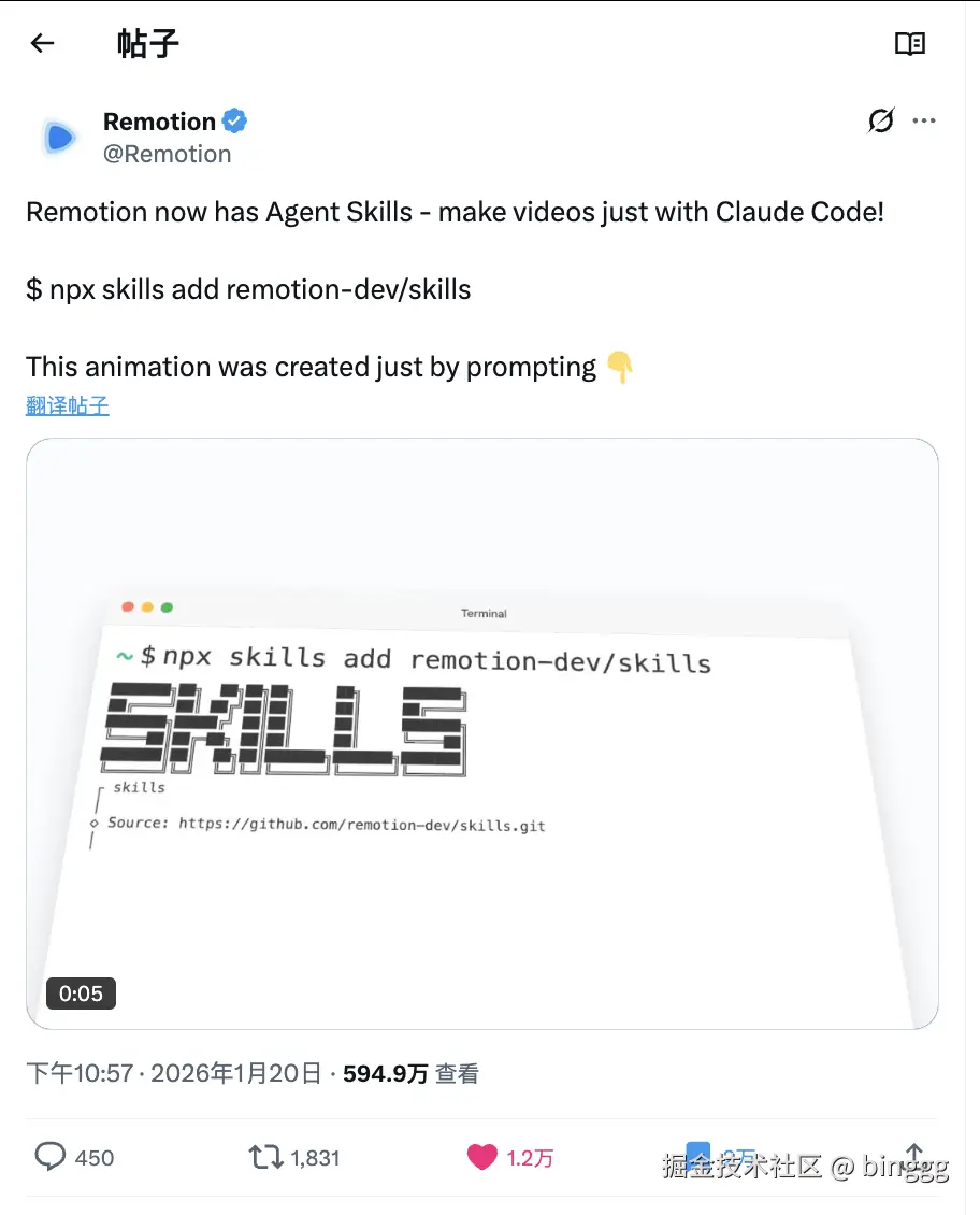 Remotion 推出视频制作 Skill,让 AI 学会用代码"剪辑"视频