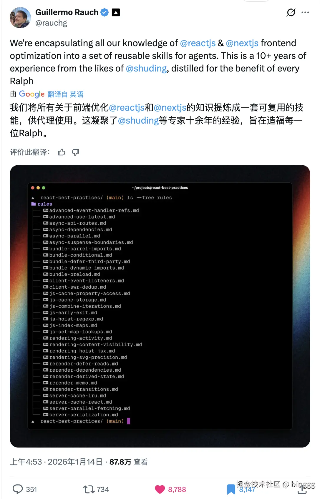 Vercel 发布了 react-best-practices,解决 AI 乱写 React 导致的性能问题,将 React 专家十余年经验你浓缩为最佳实践。