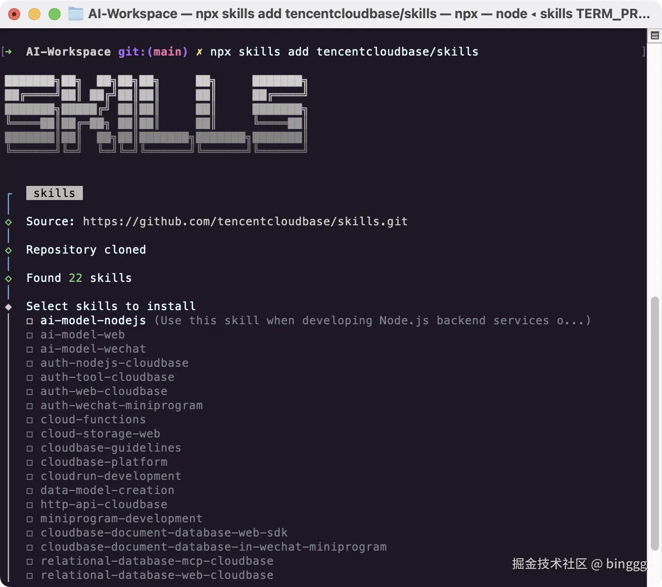 npx skills add tencentcloudbase/skills