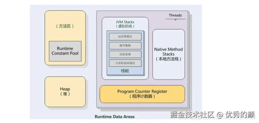 方法区是被所有线程共享,所有字段和方法字节码,以及一些特殊方法,如构造函数,接口代码也在此定义,简单说所有定义的方法的信息都保存在该区域,此区域属于共享区间;