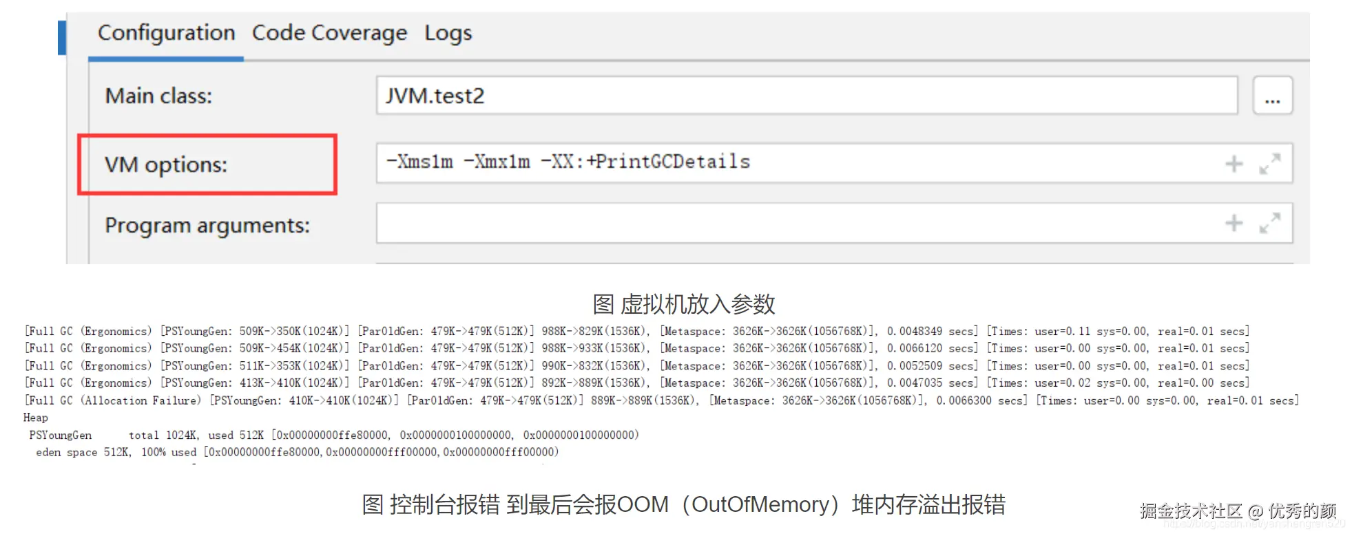 命令参数详解 // -Xms设置初始化内存分配大小/164 // -Xmx设置最大分配内存,默以1/4 // -XX: +PrintGCDetails // 打印GC垃圾回收信息 // -XX: +HeapDumpOnOutOfMemoryError //oom DUMP