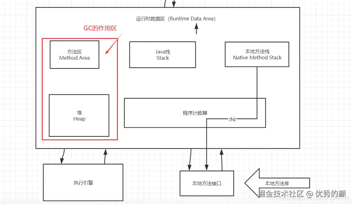 在JVM体系结构中,native关键字在本地方法栈定义,然后本地方法栈 指向 本地方法接口,进行调用。