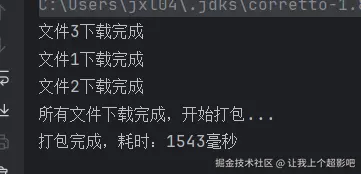 3.两个任务是并行 执行的,所以通知先完成(只等了 500ms),外卖查询后完成(等了 1000ms)。