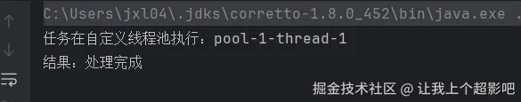 System.out.println("任务在自定义线程池执行:" + Thread.currentThread().getName());