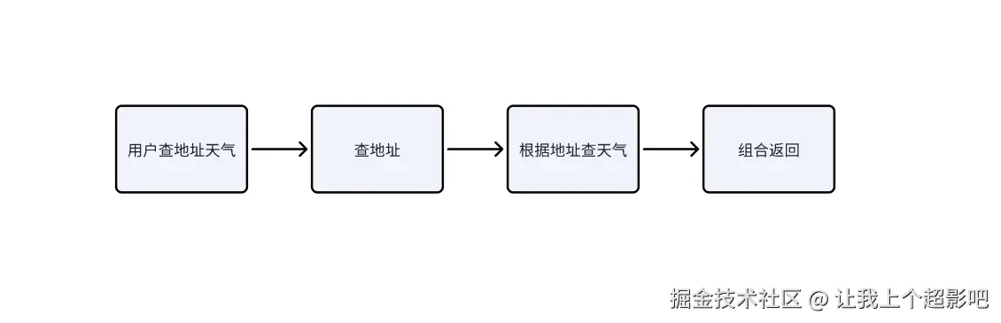 比如「先查用户地址,再根据地址查天气」,第二个任务依赖第一个的结果: