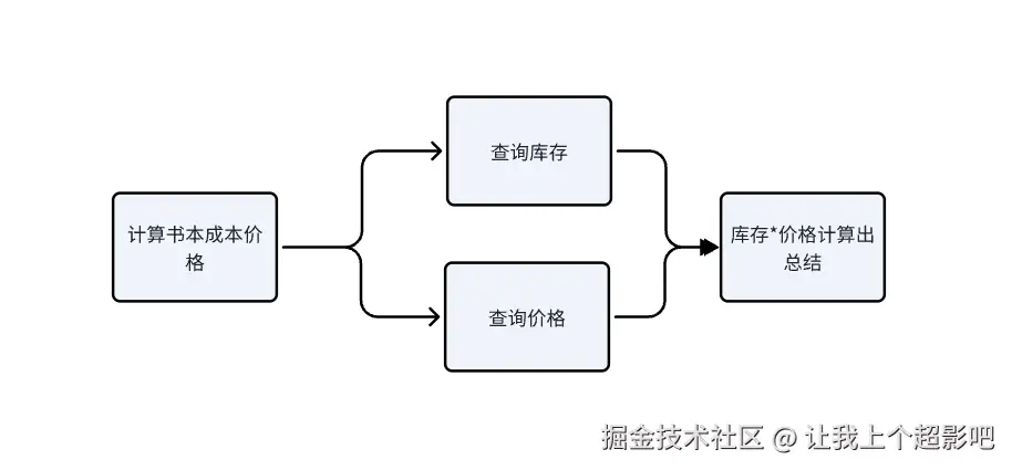 如果两个任务毫无关系,可以并行执行,最后合并结果。比如「同时查商品价格和库存,计算总价」: