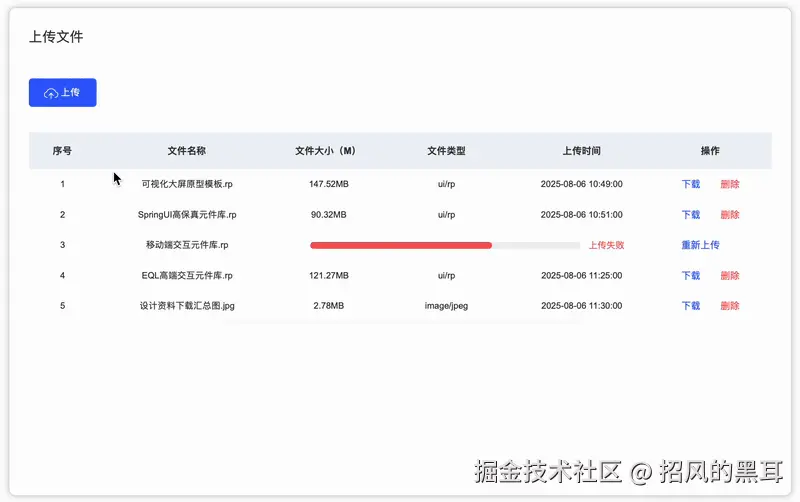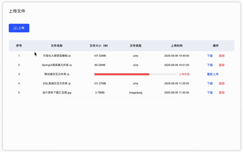 而且,这个“博物馆”还特别贴心,提供了多状态反馈。成功上传的文件,就像得到了“优秀员工”的奖章,闪闪发光;上传失败的文件,则会亮起“红灯”,提醒你“此处有坑,请绕行”;正在上传的文件,则像一个努力奔跑的运动员,动态显示着上传进度,让你随时掌握它的“奔跑速度”。