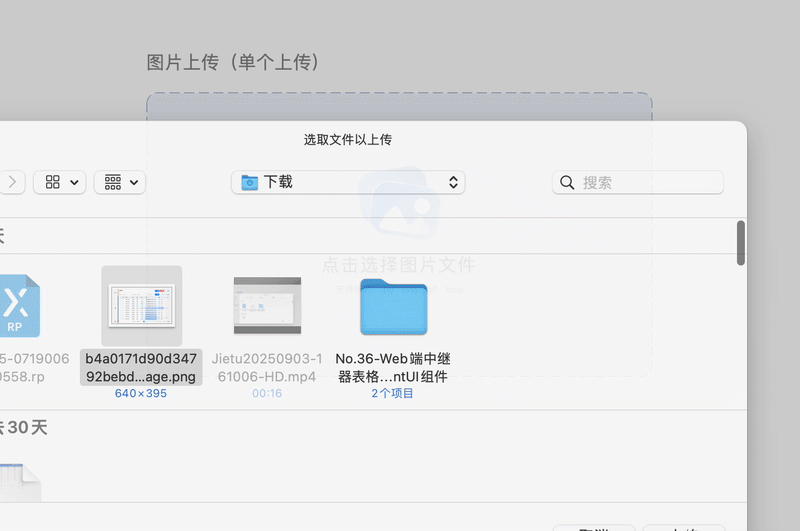如果你只需要上传一张图片,那么这个单个图片上传案例就是你的“专属战场”。简洁明了的上传区域提示,就像一位热情的导游,告诉你“此处可上传图片,请随意发挥”。