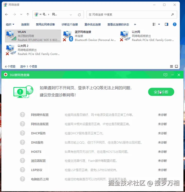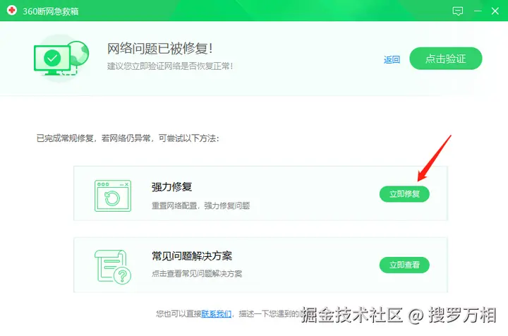 如果【常规修复】还是连接不上,可以选择【强力修复】