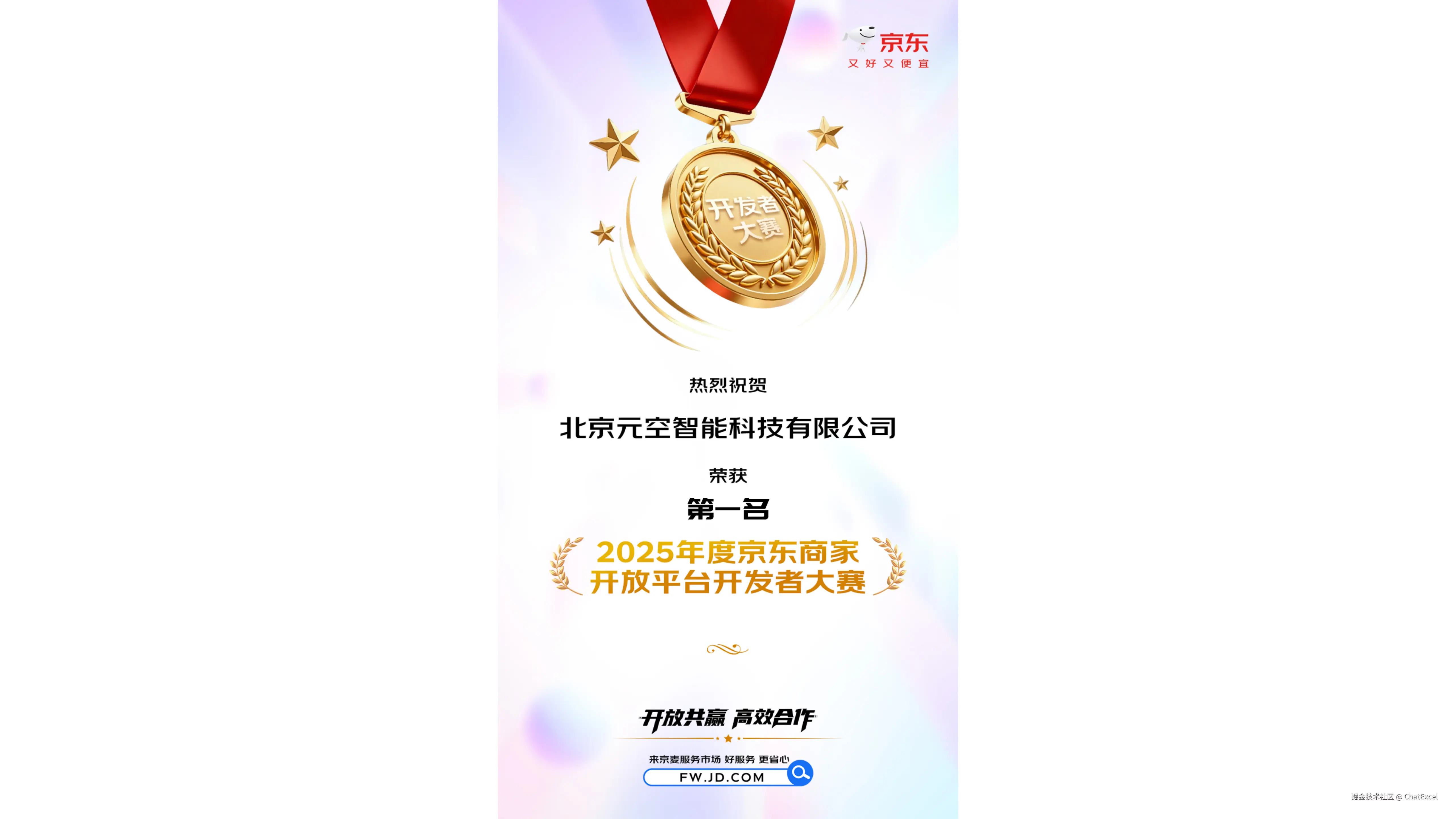元空智能旗下的明星产品 ChatExcel,凭借在生成式 AI 表格处理与数据智能体领域的卓越表现,荣获 “ 2025 年度京东开放平台开发者大赛 (智能解决方案实践赛段)”一等奖。