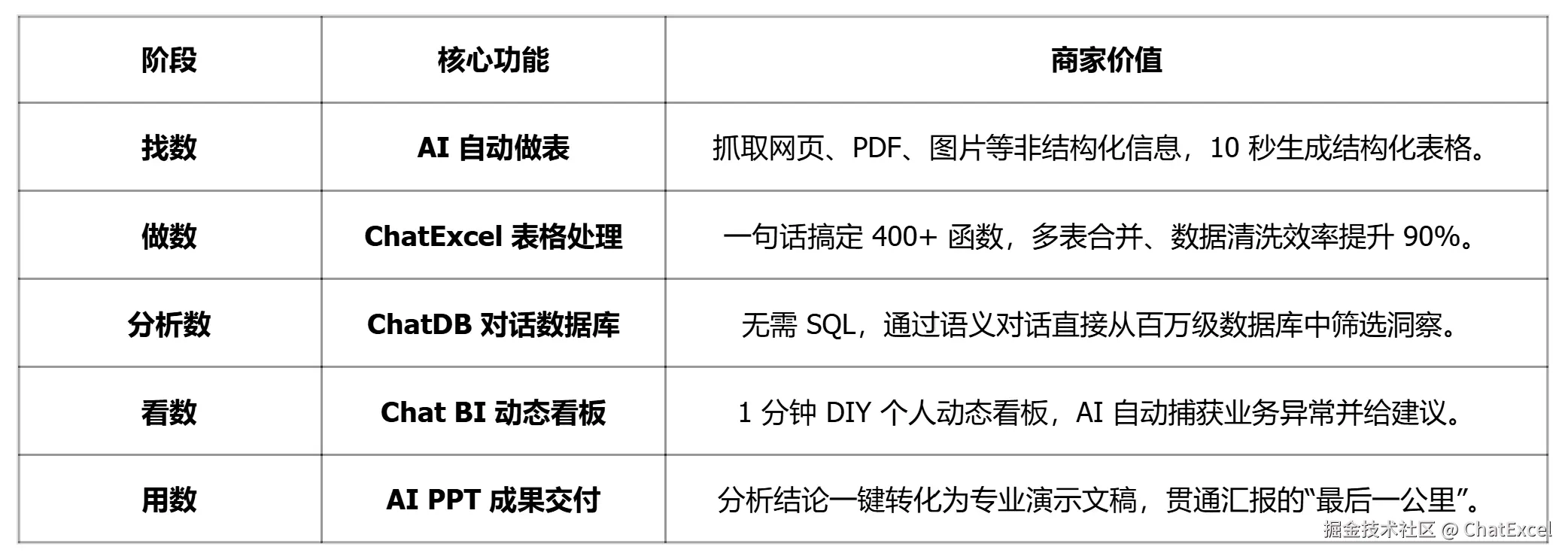 据合作商家反馈,引入 ChatExcel 后,团队在基础数据处理上的隐性成本降低了 60% 以上。它将专业的运营人员从繁琐的填表工作中解放出来,让他们将更多精力投入到创意营销和客户服务中。