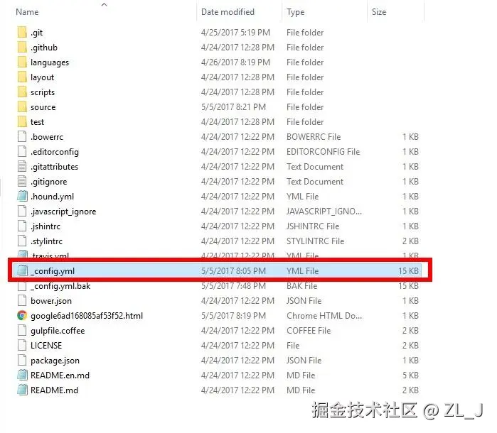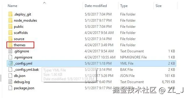进入根目录里的themes文件夹,里面也有个_config.yml文件,这个称为主题配置文件,如下图