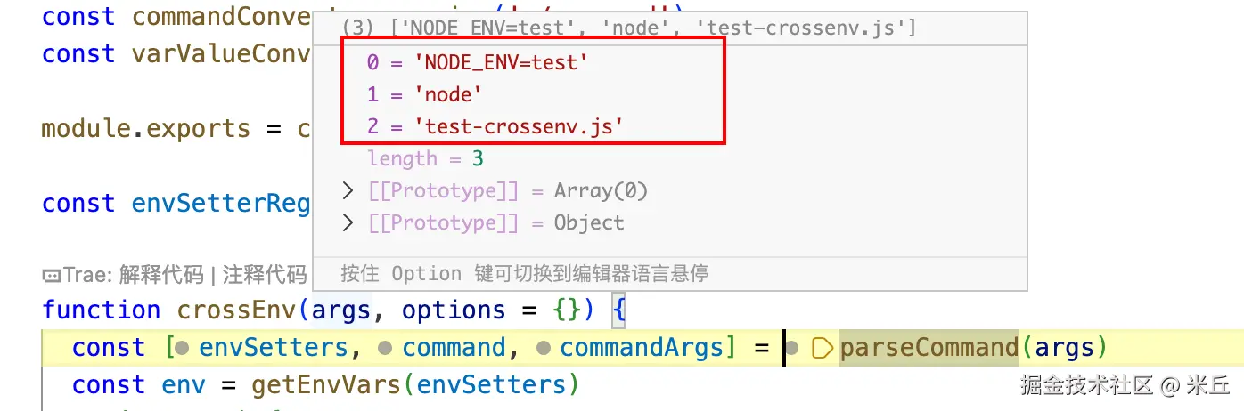 const [envSetters, command, commandArgs] = parseCommand(args)