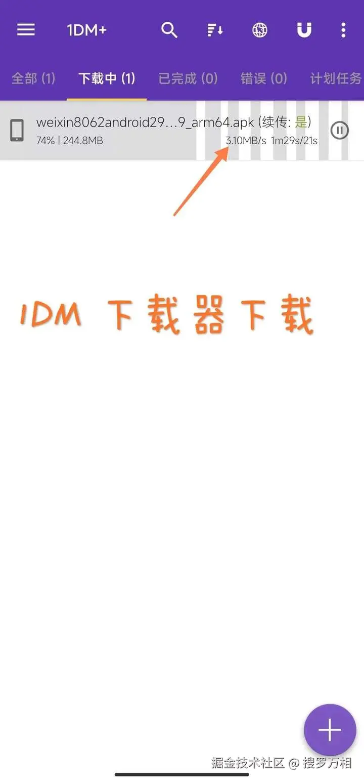 而手机端多线程下载的软件不叫IDM,而是叫1DM+。这款工具也同样非常好用,推荐这款下载神器!