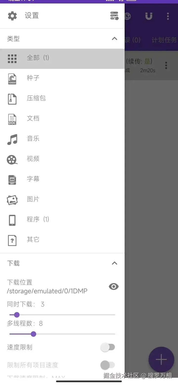 使用很简单,点击右下角的“+”号可以添加下载链接。进入设置里,可以设置下载位置,还能设置线程数 、UA等等。